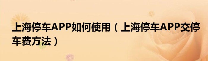 本文上海停车APP如何使用,上海停车APP交停车费方法到此分享完毕,希望对大家有所帮助。