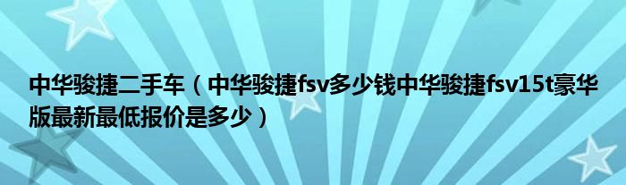 中华骏捷二手车(中华骏捷fsv多少钱中华骏捷fsv15t豪华版最新最低报价是多少)