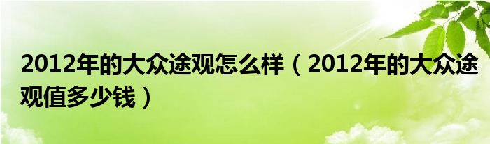2012年的大众途观怎么样(2012年的大众途观值多少钱)