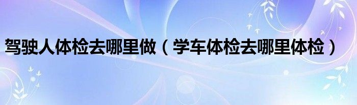 大家好,综合小编来为大家讲解下。驾驶人体检去哪里做,学车体检去哪里体检这个很多人还不知道,现在让我们一起来看看吧!