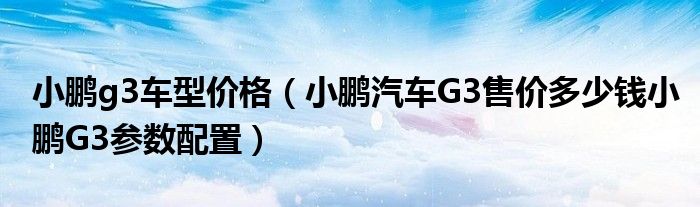 小鹏g3车型价格(小鹏汽车G3售价多少钱小鹏G3参数配置)