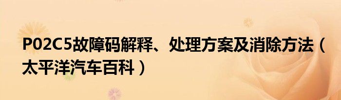 大家好,小驾来为大家讲解下P02C5故障码解释、处理方案及消除方法, 很多人还不知道,现在让我们一起来看看吧!