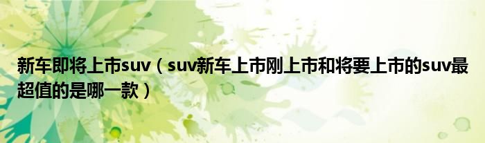 新车即将上市suv(suv新车上市刚上市和将要上市的suv最超值的是哪一款)