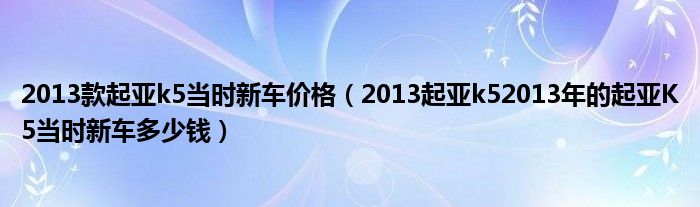 2013款起亚k5当时新车价格(2013起亚k52013年的起亚K5当时新车多少钱)