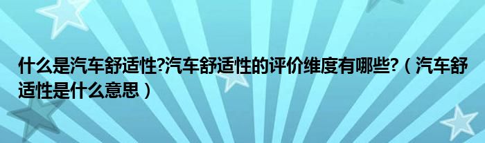什么是汽车舒适性?汽车舒适性的评价维度有哪些?(汽车舒适性是什么意思)