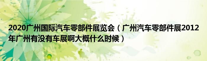 2020广州国际汽车零部件展览会(广州汽车零部件展2012年广州有没有车展啊大概什么时候)
