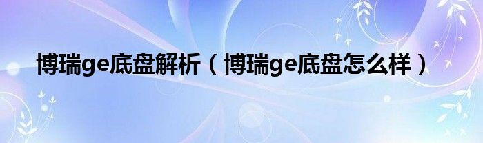 本文博瑞ge底盘解析,博瑞ge底盘怎么样到此分享完毕,希望对大家有所帮助。