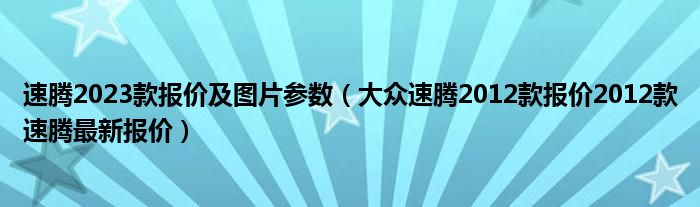 大家好,小太阳来为大家讲解下速腾2023款报价及图片参数,大众速腾2012款报价2012款速腾最新报价很多人还不知道,现在让我们一起来看看吧!