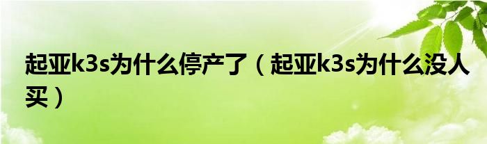 本文起亚k3s为什么停产了,起亚k3s为什么没人买到此分享完毕,希望对大家有所帮助。