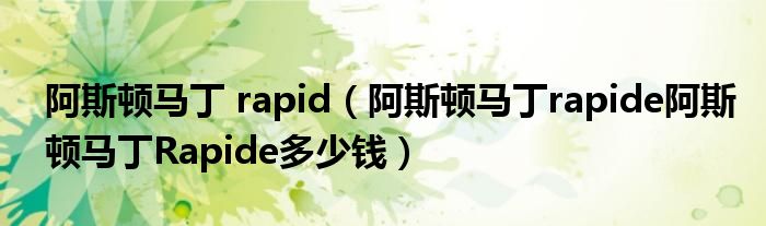 大家好,小太阳来为大家讲解下阿斯顿马丁 rapid,阿斯顿马丁rapide阿斯顿马丁Rapide多少钱很多人还不知道,现在让我们一起来看看吧!