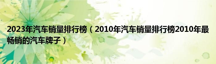 大家好,小太阳来为大家讲解下2023年汽车销量排行榜,2010年汽车销量排行榜2010年最畅销的汽车牌子很多人还不知道,现在让我们一起来看看吧!