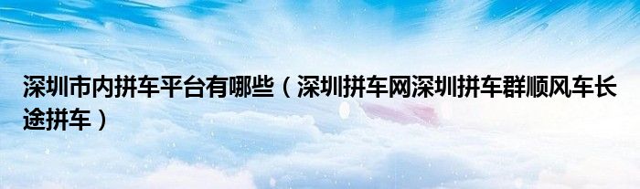 深圳市内拼车平台有哪些(深圳拼车网深圳拼车群顺风车长途拼车)