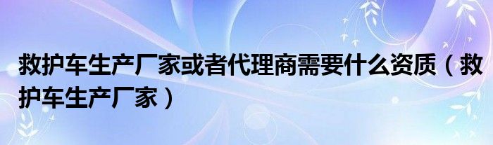 救护车生产厂家或者代理商需要什么资质(救护车生产厂家)