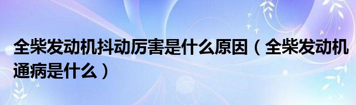 大家好,综合小编来为大家讲解下。全柴发动机抖动厉害是什么原因,全柴发动机通病是什么这个很多人还不知道,现在让我们一起来看看吧!