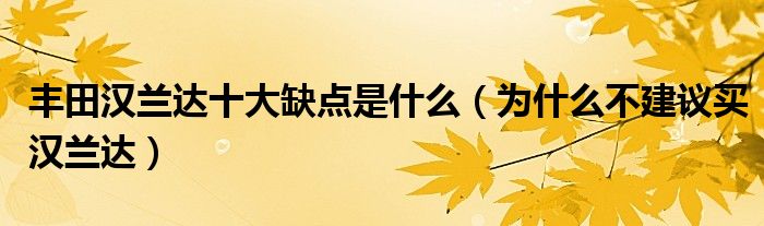 本文丰田汉兰达十大缺点是什么,为什么不建议买汉兰达到此分享完毕,希望对大家有所帮助。