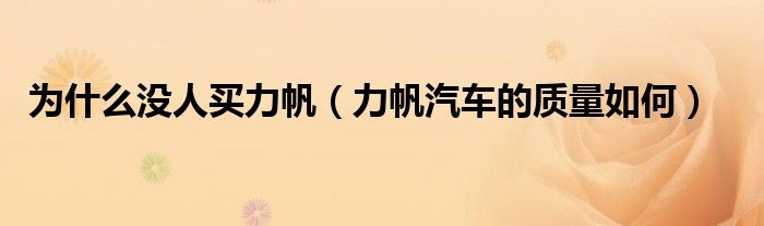 大家好,综合小编来为大家讲解下。为什么没人买力帆,力帆汽车的质量如何这个很多人还不知道,现在让我们一起来看看吧!