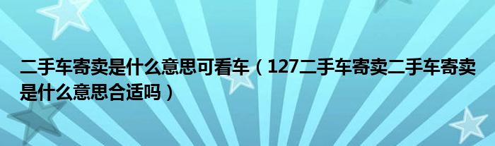 二手车寄卖是什么意思可看车(127二手车寄卖二手车寄卖是什么意思合适吗)
