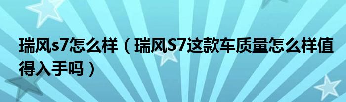 瑞风s7怎么样(瑞风S7这款车质量怎么样值得入手吗)