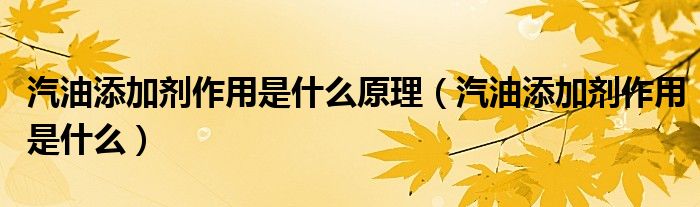 汽油添加剂作用是什么原理(汽油添加剂作用是什么)