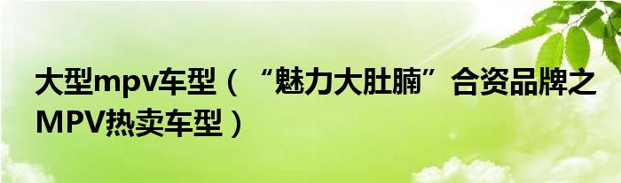 大型mpv车型(“魅力大肚腩”合资品牌之MPV热卖车型)
