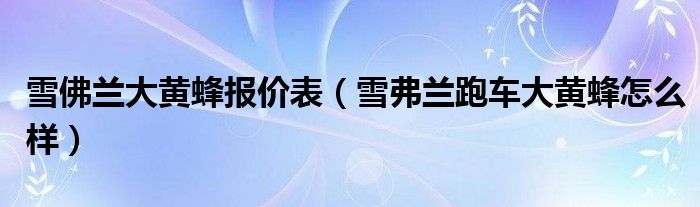 大家好,综合小编来为大家讲解下。雪佛兰大黄蜂报价表,雪弗兰跑车大黄蜂怎么样这个很多人还不知道,现在让我们一起来看看吧!