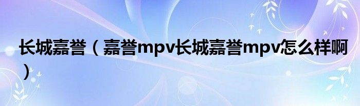 长城嘉誉(嘉誉mpv长城嘉誉mpv怎么样啊)