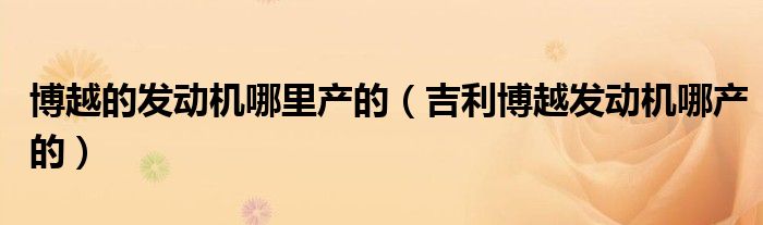 博越的发动机哪里产的(吉利博越发动机哪产的)
