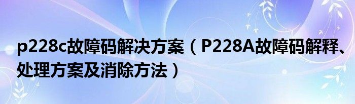 p228c故障码解决方案(P228A故障码解释、处理方案及消除方法)