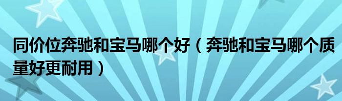 大家好,综合小编来为大家讲解下。同价位奔驰和宝马哪个好,奔驰和宝马哪个质量好更耐用这个很多人还不知道,现在让我们一起来看看吧!