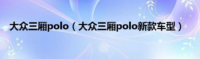 大家好,小太阳来为大家讲解下大众三厢polo,大众三厢polo新款车型很多人还不知道,现在让我们一起来看看吧!