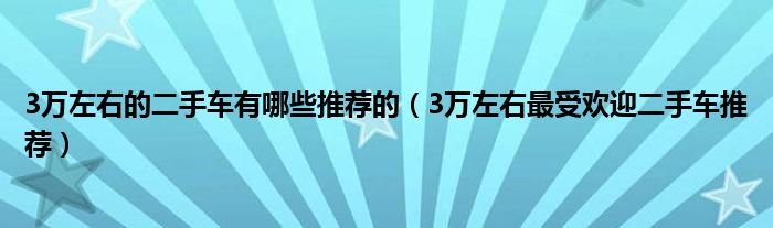 以上内容就是关于3万左右推荐的二手车有哪些?以及3万左右最热门二手车的所有推荐内容。由小编精心编辑整理。如果对您有帮助,请收藏转发。谢谢支持!