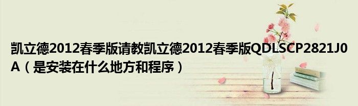 凯立德2012春季版请教凯立德2012春季版QDLSCP2821J0A(是安装在什么地方和程序)