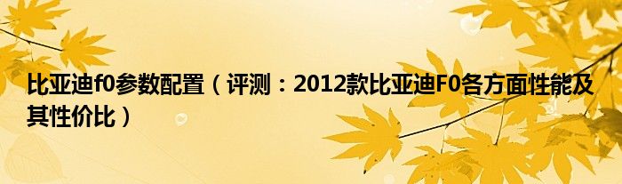 比亚迪f0参数配置(评测:2012款比亚迪F0各方面性能及其性价比)