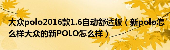大众polo2016款1.6自动舒适版(新polo怎么样大众的新POLO怎么样)