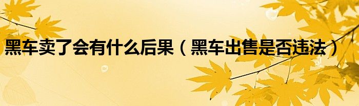 黑车卖了会有什么后果(黑车出售是否违法)