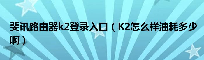 斐讯路由器k2登录入口(K2怎么样油耗多少啊)