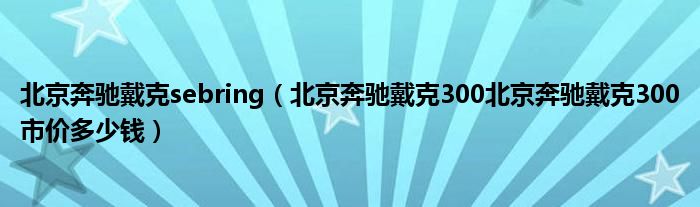 北京奔驰戴克sebring(北京奔驰戴克300北京奔驰戴克300市价多少钱)