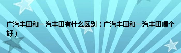 本文广汽丰田和一汽丰田有什么区别,广汽丰田和一汽丰田哪个好到此分享完毕,希望对大家有所帮助。