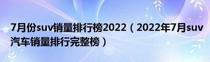 大家好,小太阳来为大家讲解下7月份suv销量排行榜2022,2022年7月suv汽车销量排行完整榜很多人还不知道,现在让我们一起来看看吧!