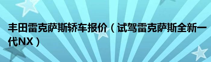丰田雷克萨斯轿车报价(试驾雷克萨斯全新一代NX)