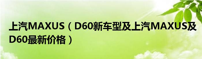 上汽MAXUS(D60新车型及上汽MAXUS及D60最新价格)