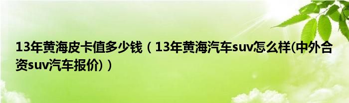 大家好,综合小编来为大家讲解下。13年黄海皮卡值多少钱,13年黄海汽车suv怎么样(中外合资suv汽车报价)这个很多人还不知道,现在让我们一起来看看吧!