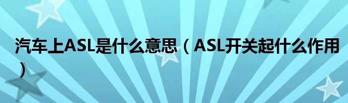 大家好,综合小编来为大家讲解下。汽车上ASL是什么意思,ASL开关起什么作用这个很多人还不知道,现在让我们一起来看看吧!