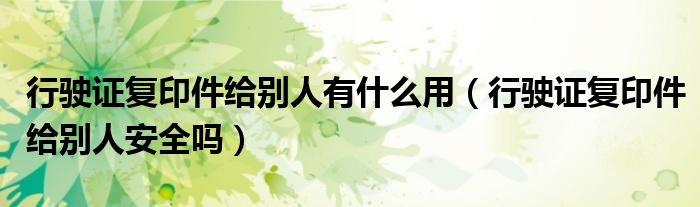 行驶证复印件给别人有什么用(行驶证复印件给别人安全吗)
