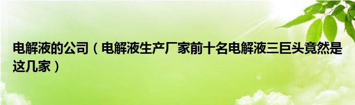 大家好,小太阳来为大家讲解下电解液的公司,电解液生产厂家前十名电解液三巨头竟然是这几家很多人还不知道,现在让我们一起来看看吧!