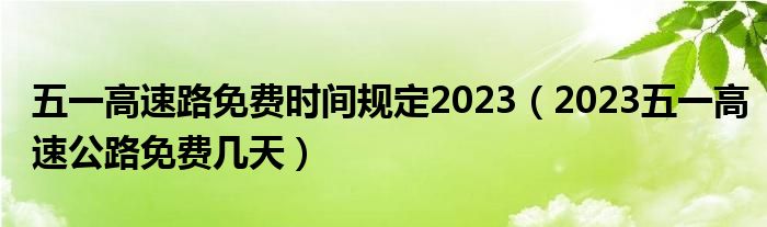 本文五一高速路免费时间规定2023,2023五一高速公路免费几天到此分享完毕,希望对大家有所帮助。