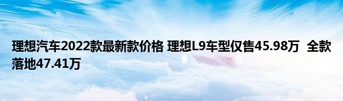 理想汽车2022款最新款价格 理想L9车型仅售45.98万 全款落地47.41万