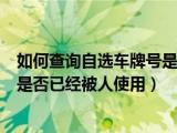 大家好,小驾来为大家讲解下如何查询自选车牌号是否被使用,网上自选车牌号怎么查询是否已经被人使用很多人还不知道,现在让我们一起来看看 浏览全文>>