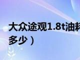 大家好,小太阳来为大家讲解下大众途观1 8t油耗大吗,大众途观1 8t油耗是多少很多人还不知道,现在让我们一起来看看吧!一、油耗量以及保养 浏览全文>>