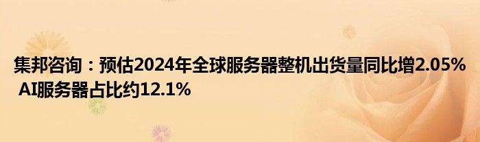 集邦咨询:预估2024年全球服务器整机出货量同比增2.05% AI服务器占比约12.1%